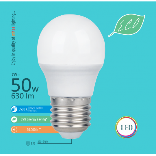 E27 7W G45 6500K LED ECO sijalica 220-240V Mitea Lighting